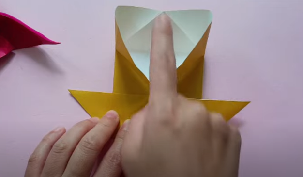 하단의 색종이가 가운데로 오도록 하시고 자연스럽게 접어주세요.